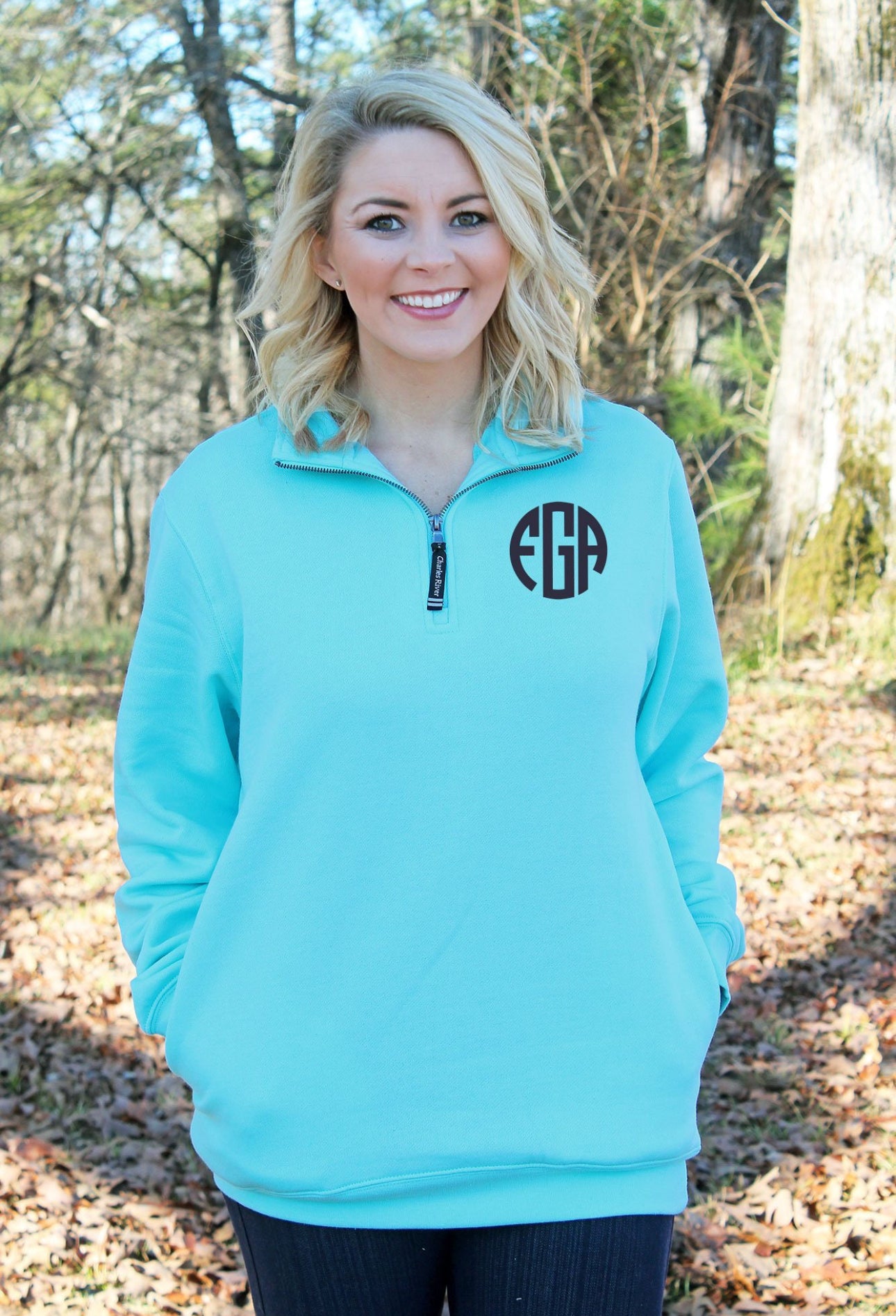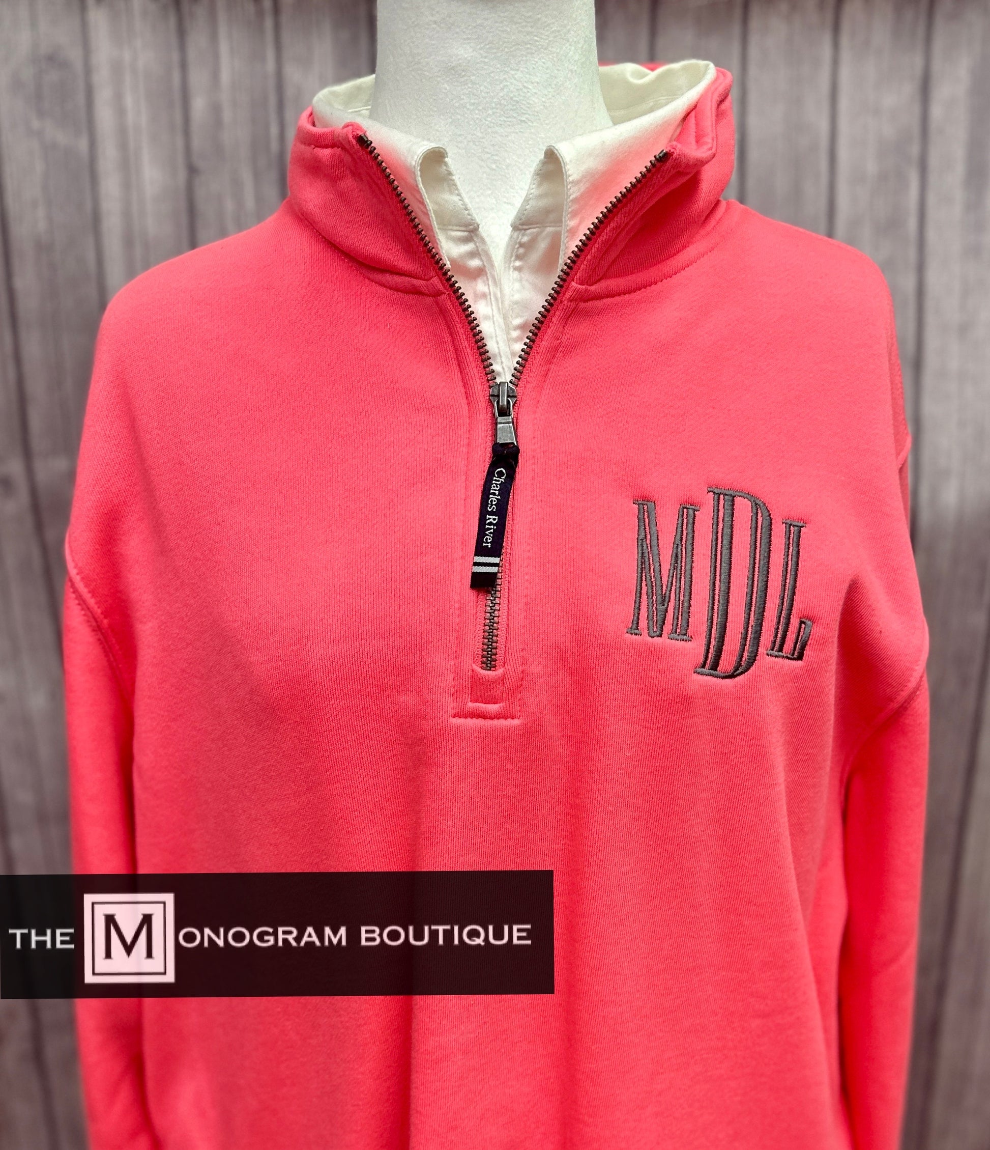 Dress it up or keep it casual — the Charles River Monogrammed 1/4 Zip Pullover does it all. Soft like your favorite sweatshirt, but cute enough for yeveryday wear!