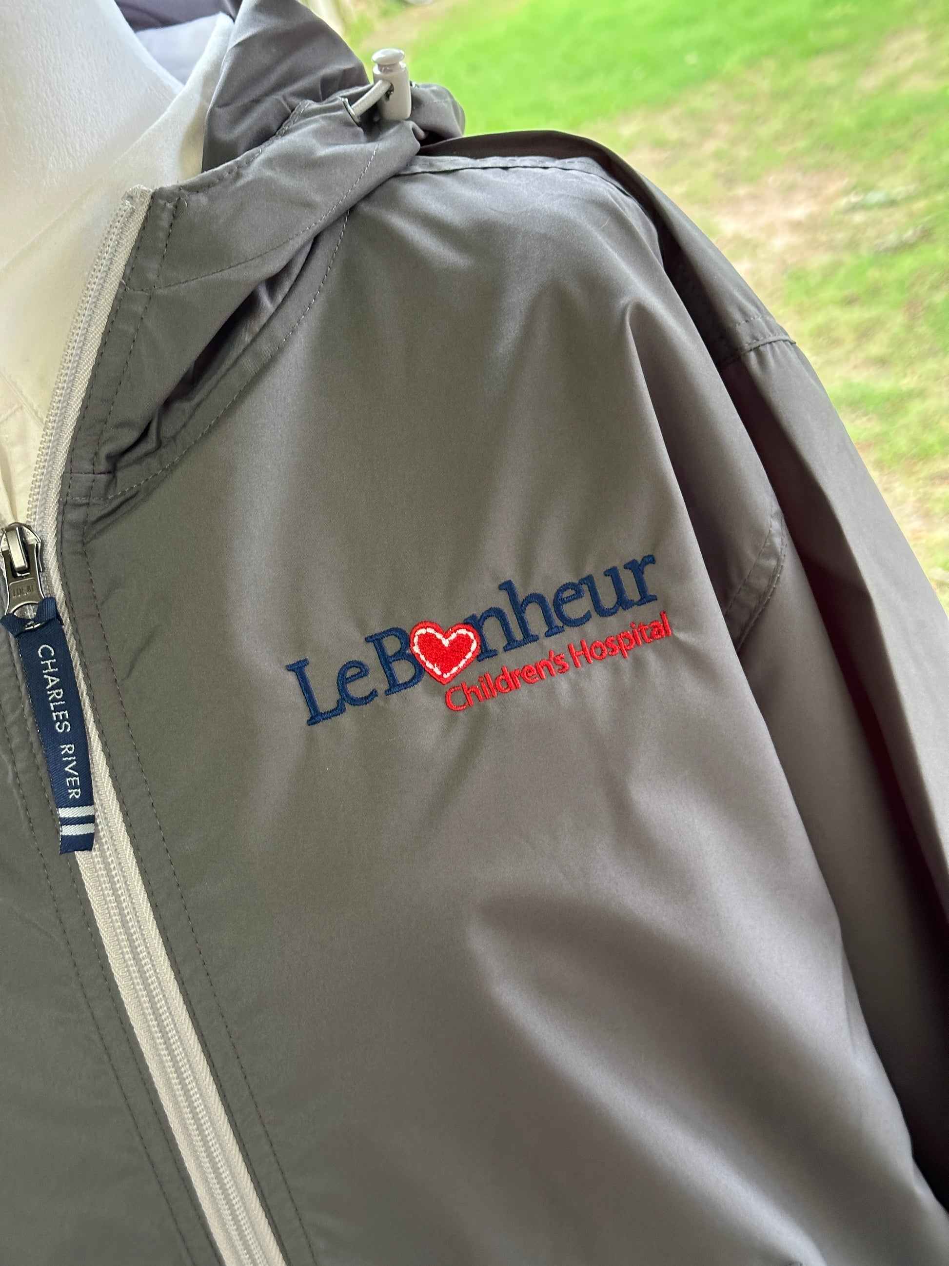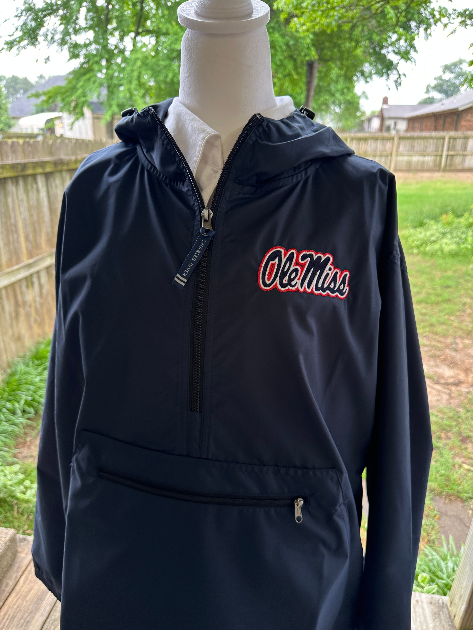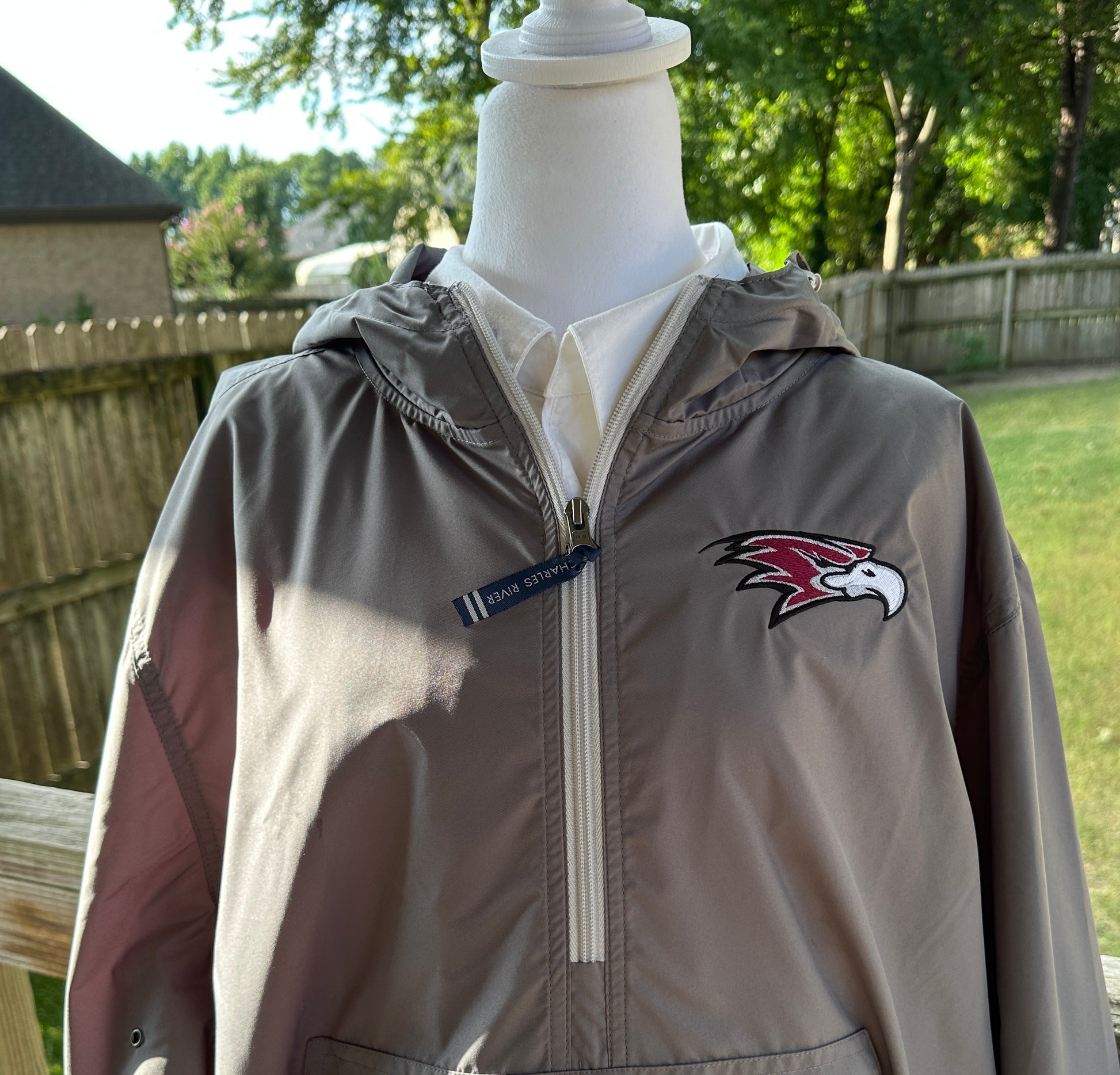 Features a hood with adjustable shockcord drawstring, plus underarm grommets for added ventilation